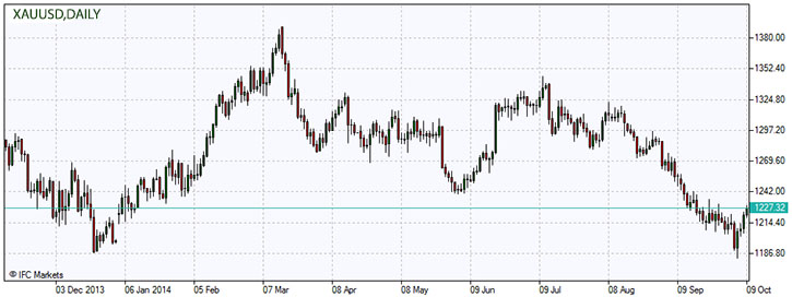 Цена за немедленную поставку золота выросла на 2,5% в течение трех дней после публикации протоколов заседания ФРС за 16-17 сентября. Доллар упал, способствуя стабильному спросу на сырьевые товары.