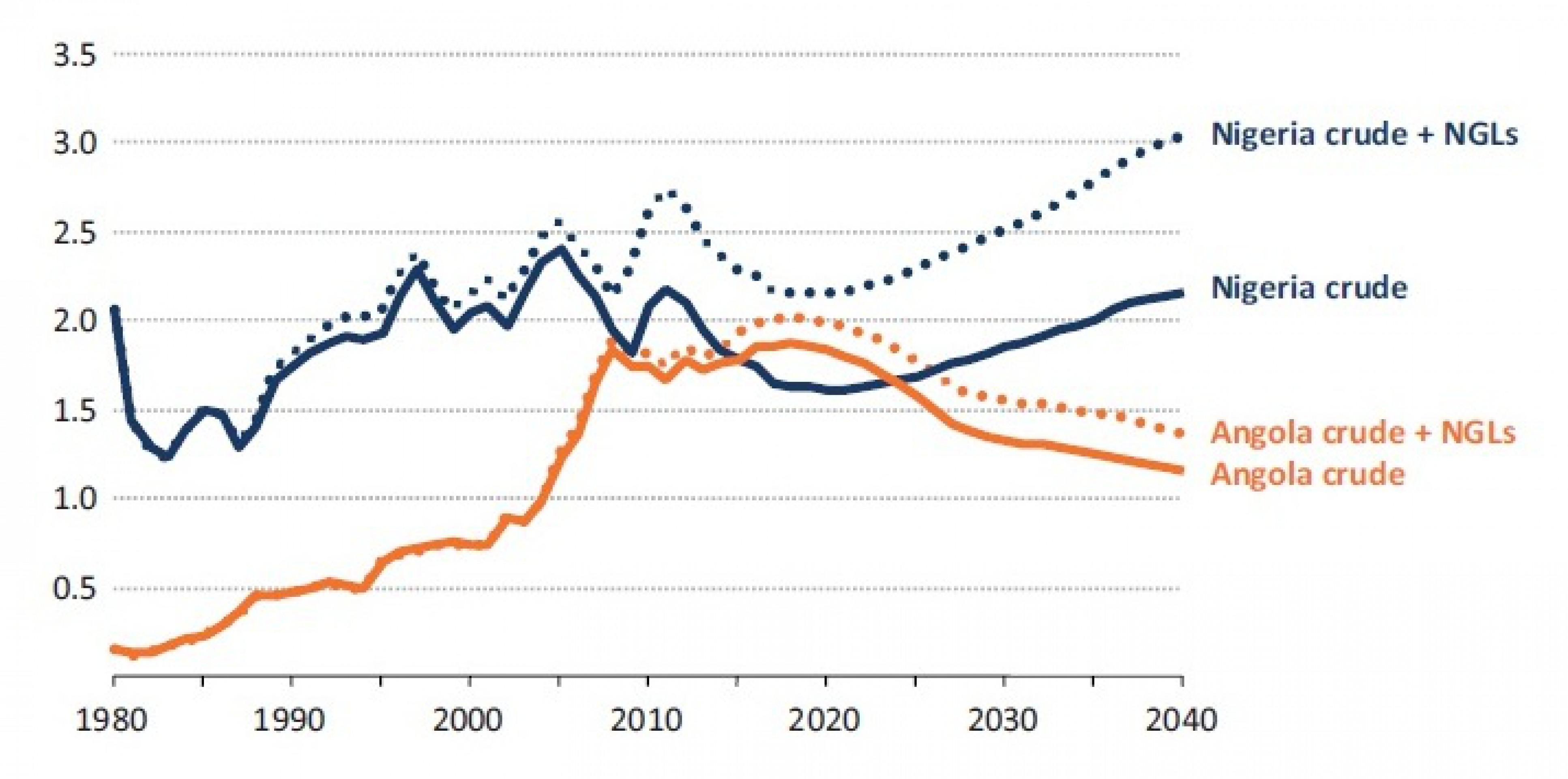 По прогнозам Ангола опередит Нигерию по объемам добычи нефти в 2016 г. и будет оставаться ведущим производителем "черного золота" в Африке в течение последующих 10 лет. В МЭА отмечают ожидаемое увеличение добычи в Анголе, однако ключевым фактором будут оставаться внутренние проблемы Нигерии.