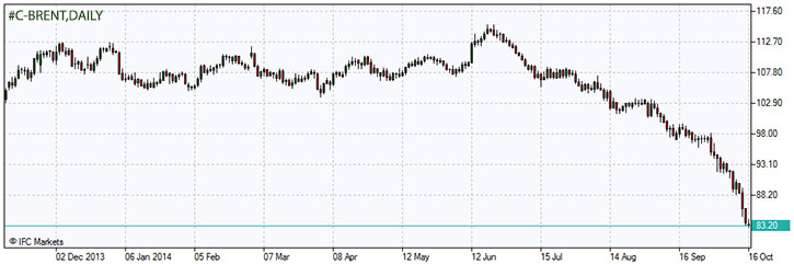 Ноябрьский фьючерс на поставку нефти марки Brent упал на $1.06, или 1,3 %, до $82.72 за баррель на лондонской бирже ICE Futures. Декабрьский контракт опустился на 69 центов до $83.43. Цены на фьючерсы снизились седьмой раз подряд за восемь дней. Запасы нефти в США увеличились на 10,2 млн. баррелей на прошлой неделе, согласно вчерашним сообщениям Американского института нефти в Вашингтоне. В своем ежемесячном докладе 14 октября Международное агентство по энергетике в Париже пересмотрело в сторону понижения темпы роста мирового спроса на нефть в этом году с 900 тыс. баррелей в день до 650 тыс. Страны-экспортеры ОПЕК снизили цены в борьбе за долю на рынке, и пока нет никаких признаков по принятию решения о сокращении производства в ближайшее время. На этом фоне Bank of America Corp. и BNP Paribas SA прогнозируют, что цена нефти будет торговаться выше $80 за баррель, в то время как Commerzbank AG оценивает данный уровень в качестве минимального для Brent. Частично они рассчитывают на то, что ОПЕК сократит производство возможно уже в следующем месяце, чтобы компенсировать сокращение спроса.