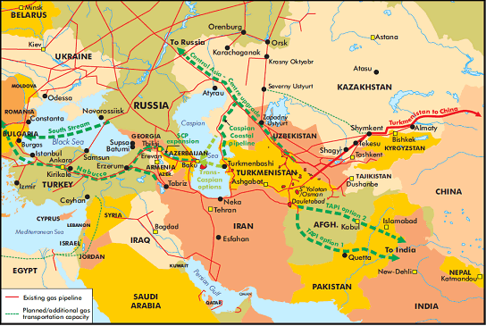 Одним из наиболее перспективных рынков в регионе является именно Индия. Ожидается, что ее потребность в импортном газе к 2030 году вырастет почти в три раза и составит более 50 млрд куб. м газа по сравнению с 17,8 млрд куб. м, импортированных в страну в виде СПГ в 2013 году. Индия ранее предлагала России продлить газопровод Россия-Китай до своей границы, однако конкретных решений принято не было. Вероятно, что именно Туркменистан, а вовсе не Россия, станет основным поставщиком трубопроводного газа в Индию.