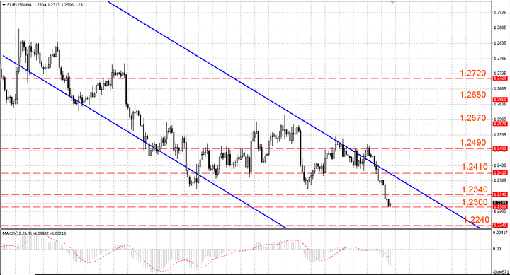 Риск удешевления евровалюты, а также новый виток роста американской валюты, который ожидается в ближайшей перспективе, спровоцировал снижение пары валют. Курс упал с максимального уровня 1.2530, протестировав в конце вчерашних торгов минимум недели в области 1.2300.