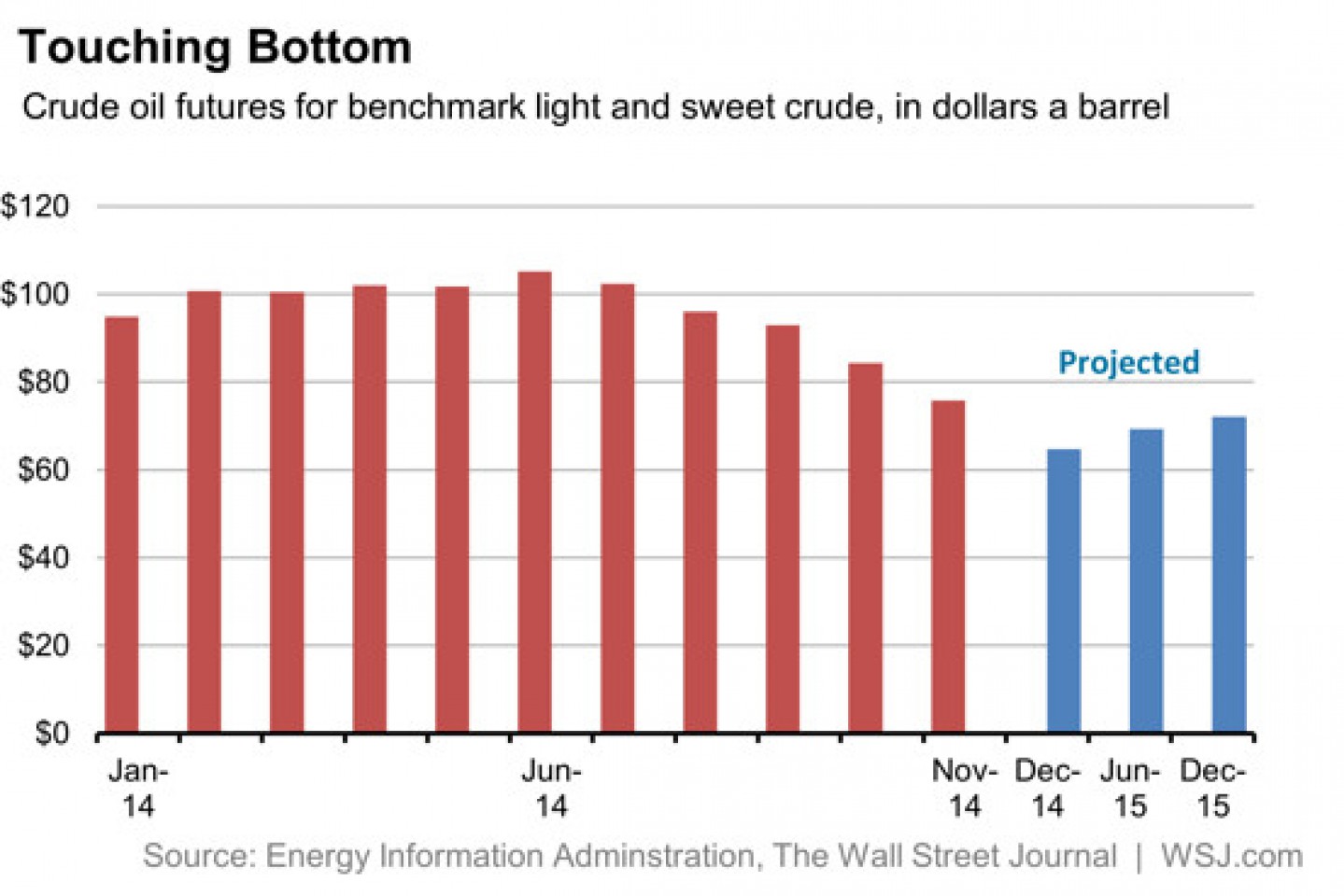 Однако, как считают эксперты, цены на нефть достигли дна, их падение в ближайшее время остановится, и на рынке начнется стабилизация. Согласно опросу большинство экспертов ожидают, что в конце декабря цена нефти марки WTI будет находиться у отметки $64,73 за баррель. Причем уже к середине следующего года цены вырастут до $69,32 за баррель, а к концу 2015 г. - до $72,10 за баррель.