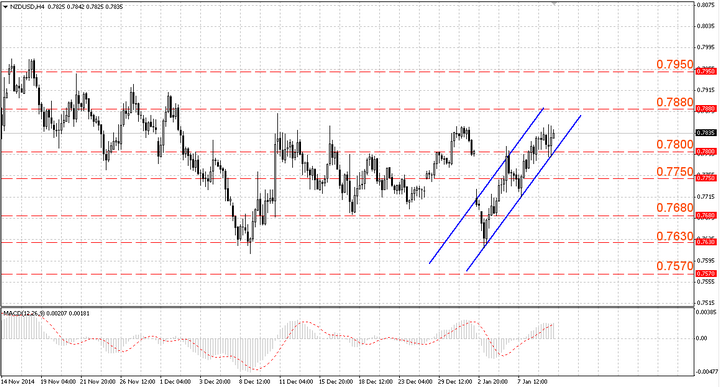 Валютный инструмент киви/доллар США ведет торги на уровнях вблизи максимумов торговой сессии накануне в районе отметки 0.7840. На фоне крепкого уровня сопротивления, берущего начало с середины ноября 2014 года, осуществляются продажи в области 0.7800-0.7810.