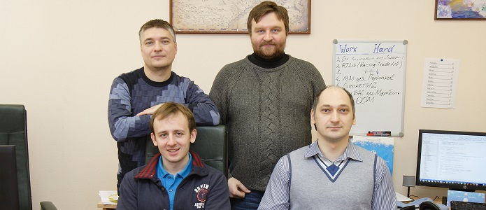 Победитель этого конкурса – торговый робот под названием robot_TestV1.1, который сумел разогнать официальный счет с 50 тысяч до 2,377 млн рублей, показав тем самым за три месяца доходность в 4754%. Financial One пообщался с командой разработчиков алгоритма, чтобы выяснить, какие стратегии сегодня способно приносить столь высокую доходность. Итак, знакомьтесь: Вадим Кулешов (сверху справа), Артем Маранджян (сверху слева) Антон Медведев (снизу слева), Александр Акопян (снизу справа).