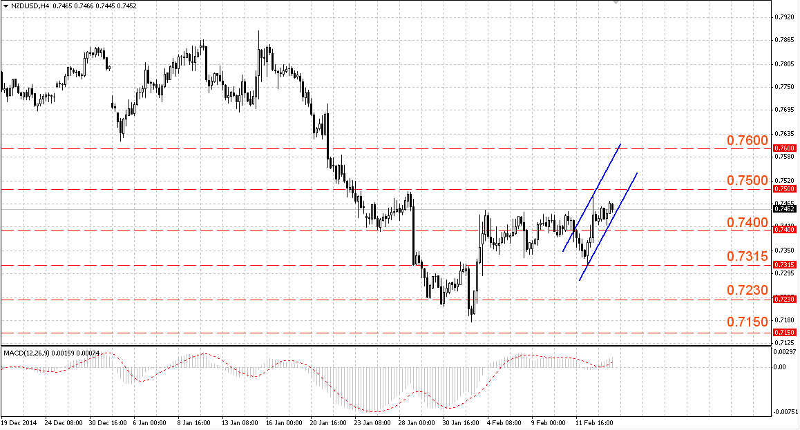 Пара NZD/USD торгуется в восходящем канале 0.7430-0.7490. Значимые уровни Фибоначчи для коррекции 23.6 (0.7415), 38.2 (0.7370), 50.0 (0.7375).