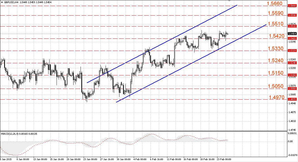 Пара GBP/USD торгуется в восходящем канале 1.5375-1.5545. Значимые уровни Фибоначчи для коррекции 23.6 (1.5365), 38.2 (1.5290), 50.0 (1.5230).