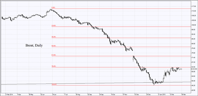 Отметим также, что ожидания повышения учётной ставки способствовали мощному росту индекса доллара США на этой неделе. На его фоне повышение фондового рынка выглядит незначительным. По нашему мнению, после повышения ставок доллар и индексы американских акций могут двигаться в противофазе, что можно использовать при создании персонального композитного инструмента. Сегодня кроме данных по рынку труда выйдет ещё и торговый баланс за январь. Прогноз — позитивный. Оборот торгов на американских биржах заметно сократился. Вчера он составил 5,7 млрд. акций, что на 12% ниже среднего за пять дней.