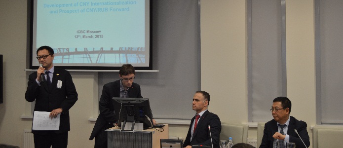 Председатель правления АКБ «Банк Китая (ЭЛОС)» Чжао Ляньцзе в своей приветственно речи подчеркнул, что уже 161 страна мира использует юань как расчетную валюту. По мнению банкира, Россия и Китай должны проработать вопрос об организации торговли юанем совместно с Шанхайской биржей в виде создания единого «стакана заявок» по паре юань-рубль.