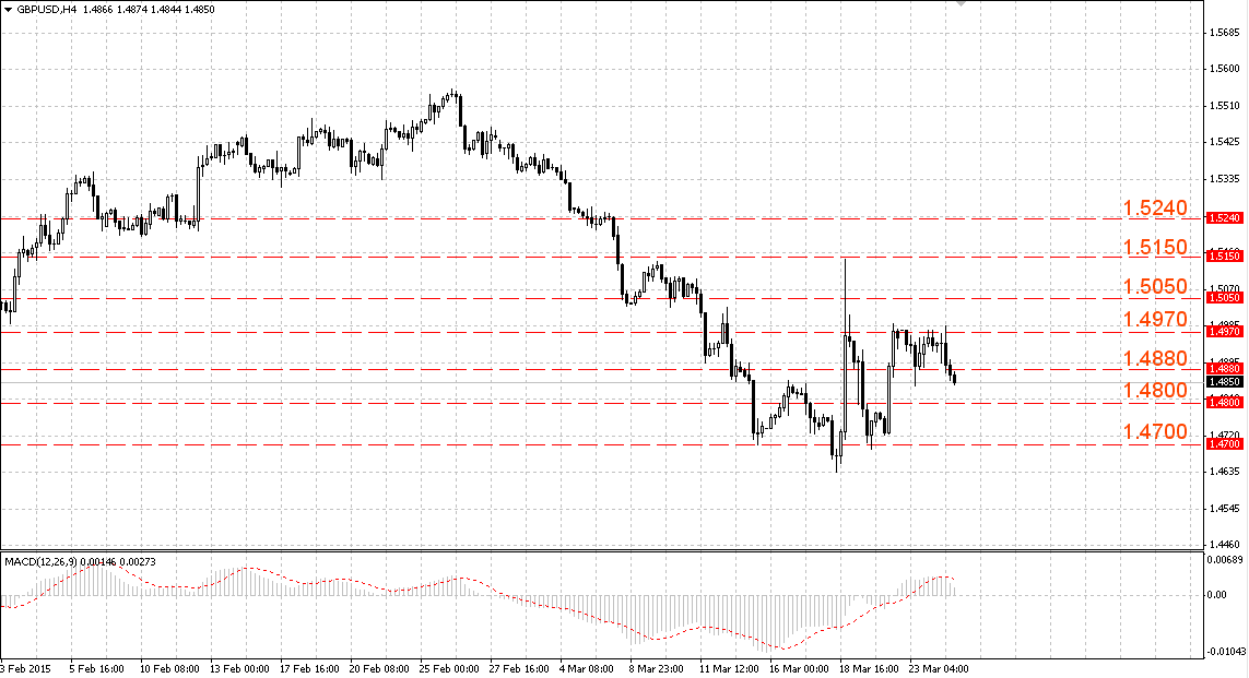 Валютный инструмент обрёл поддержку на 1.4800. Сопротивление сдерживает рост в области 1.4880.