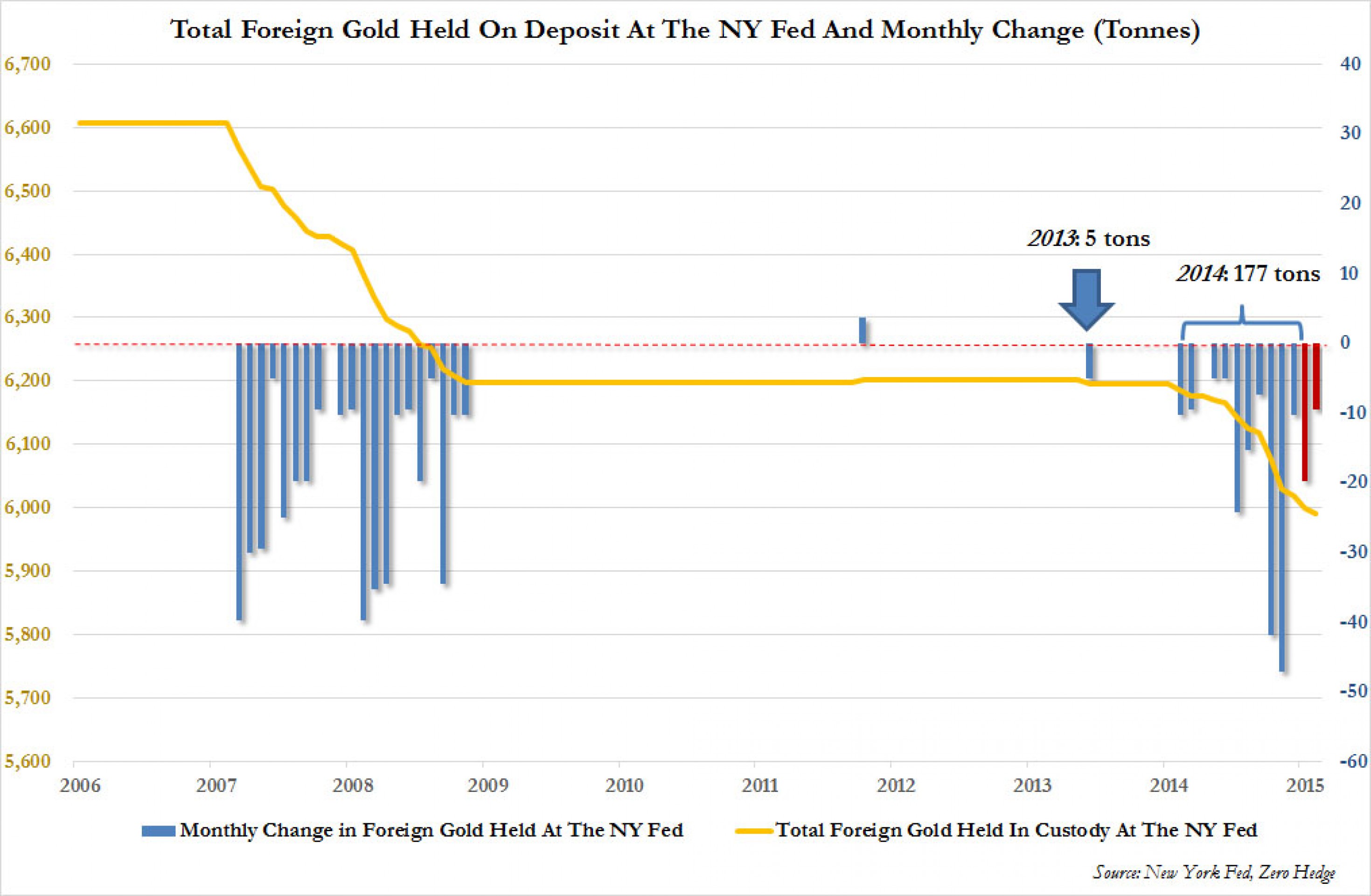Сам ФРБ золотом не владеет, а лишь выступает хранителем драгоценного металла, причем безвозмездно, плата берется только за перемещение. Около 98% золота в нем принадлежит центробанкам других стран, а оставшиеся 2% - Штатам и международным организациям, как, например МВФ. Таким образом, снижение золотых запасов в хранилище означает изъятие своего металла другими странами. Известно, что в прошлом году Германия и Голландия приняли решение о репатриации своих золотых запасов из США суммарным объемом 207 тонн. Однако произошла нестыковка: Федеральная резервная система заявила, что по итогам 2014 г. запасы в хранилище сократились на 177 тонн, то есть, куда подевались 30 тонн, непонятно. Но это достаточно серьезный объем, чтобы вот так просто затеряться, поэтому экспертам этот вопрос не давал покоя. Всех мучил один вопрос: кто разместил 30 тонн золота в ФРБ Нью-Йорка? Строились различные предположения. Допускалась мысль, что это сделал банк JP Morgan, хранилище которого, по слухам, соединено с хранилищем ФРБ Нью-Йорка тоннелем. Но нет - у JP Morgan в наличии только 23 тонны металла.