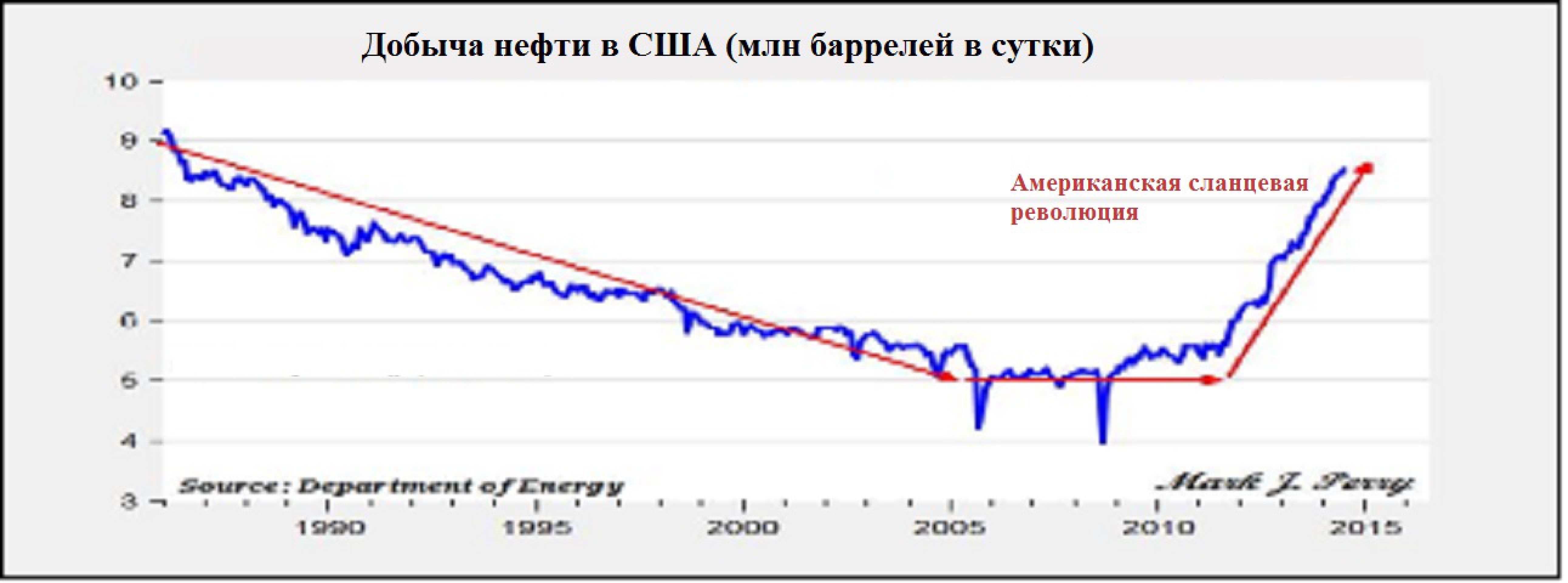 За последнее десятилетие американская энергетическая промышленность сделала большой рывок благодаря использованию новых технологий, в том числе гидроразрыва пласта. Этот метод позволяет добывать нефть и природный газ из сланцевых пород, что и привело к сильному росту добычи нефти и газа внутри США.