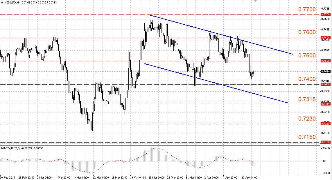 Пара NZD/USD торгуется в нисходящем канале 0.7575-0.7400. Значимые уровни Фибоначчи для коррекции 23.6 (0.7460), 38.2 (0.7505), 50.0 (0.7545).