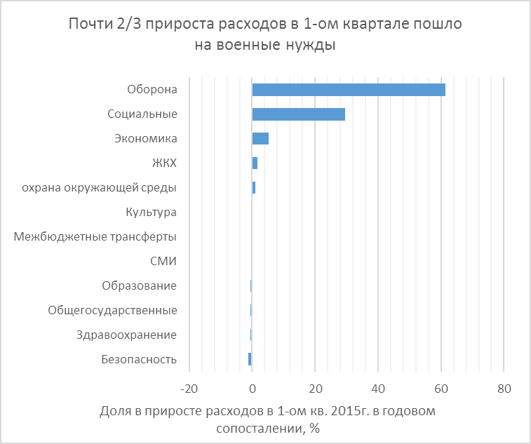 На помощь казне пришли прочие, не нефтегазовые, доходы, выросшие в марте на 30% к марту прошлого года. Понятно, что этот рост в значительной мере обязан примерно 17%-ной потребительской инфляции, увеличившей поступления НДС и иных привязанных к уровню цен налогов. В итоге дефицит бюджета снизился с 7.4% ВВП за 2 мес. до 3.9% по итогам квартала. С учетом сезонно-календарной поправки бюджетный дефицит марта можно оценить в 3.4% ВВП, что не так уж далеко от 3.2% ВВП дефицита, требующихся для выхода на плановый лимит расходования Резервного фонда по итогам года. Не нефтяной дефицит снизился до 10.9%, что в целом близко к средней цифре за последние несколько лет.