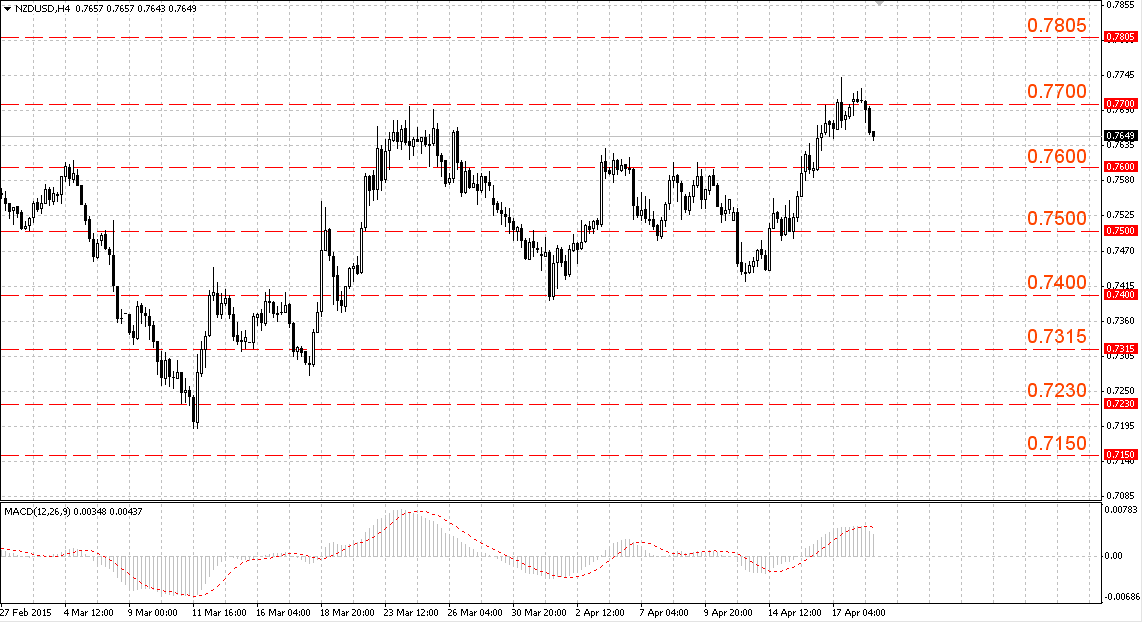 Покупатели смогли на прошлой неделе пробить сопротивление 0.7600 и мартовский максимум 0.7675. Кроме того состоялся краткосрочный пробой сопротивления 0.7700, но закрепить позиции выше этого уровня паре не удалось. Пробой состоялся на фоне высоких объемов. Был отмечен отскок вниз от отметки 0.7700.