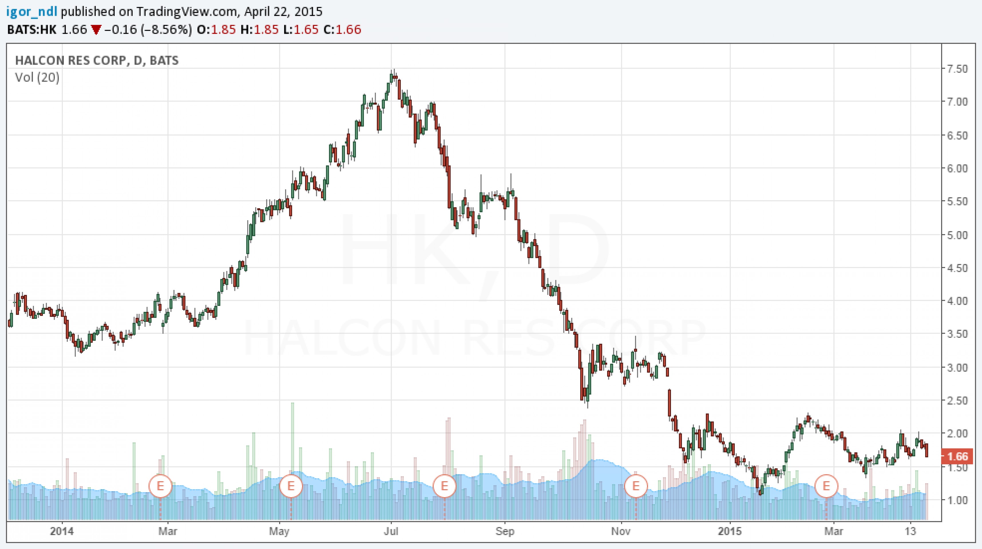 Стоимость бумаг самого крупного выпуска необеспеченных облигаций Halcon объемом $1,35 млрд с купоном в 8,875% вчера упала до 78,6 цента за доллар. Не менее красноречиво о состоянии дел в компании говорит и динамика ее акций: