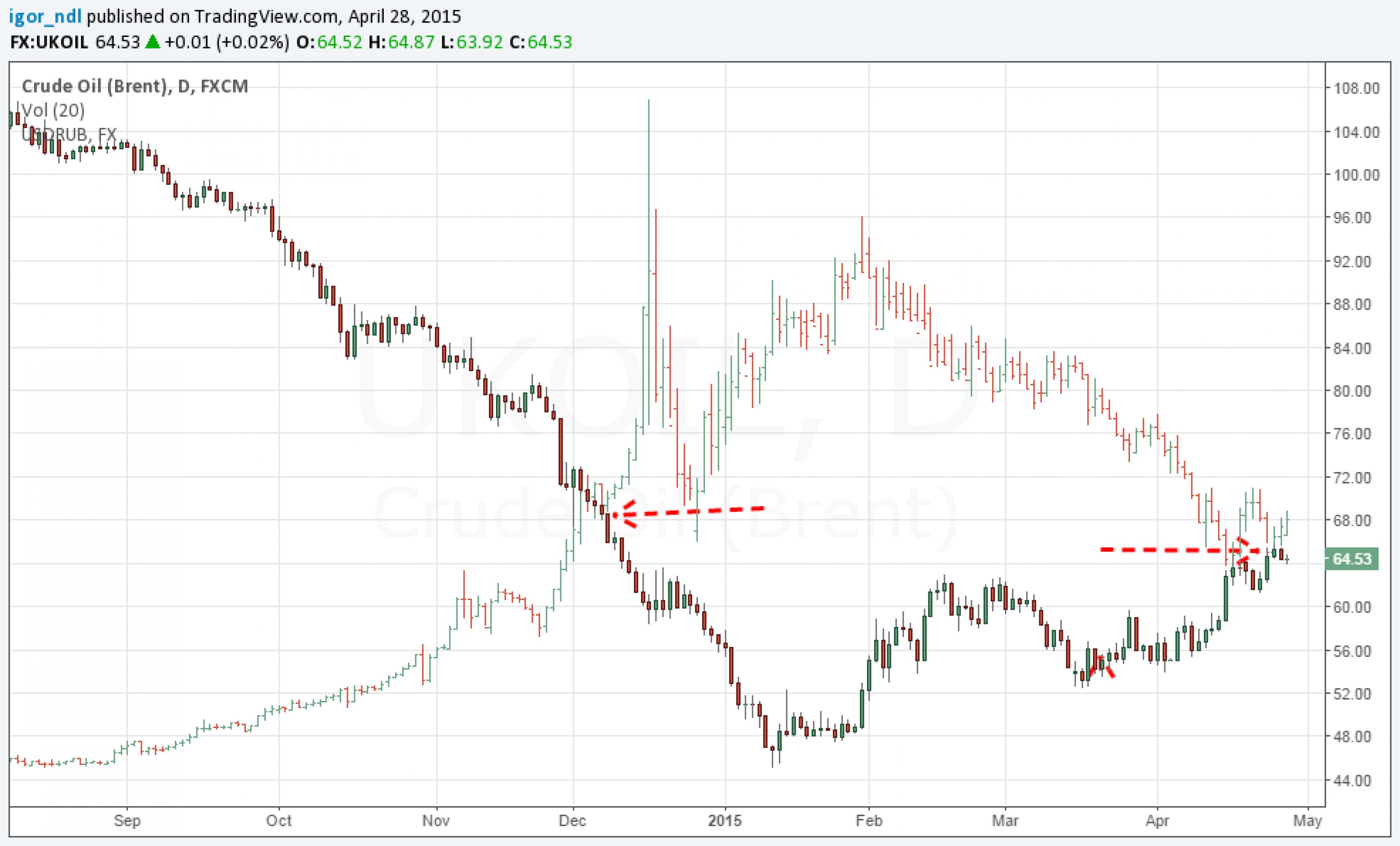 Стоит также отметить, что нефть и рубль по-прежнему сохраняют высокую корреляцию. Цены на "черное золото" вернулись к уровням первой половины декабря, и котировки пары доллар/рубль сделали ровно то же самое. В отдельные моменты, как это было несколько недель назад, создается впечатление, что рубль отвязался от нефти и более не обращает на нее внимание, однако на самом деле это не так, и на более продолжительном периоде времени взаимосвязь отчетливо видна.