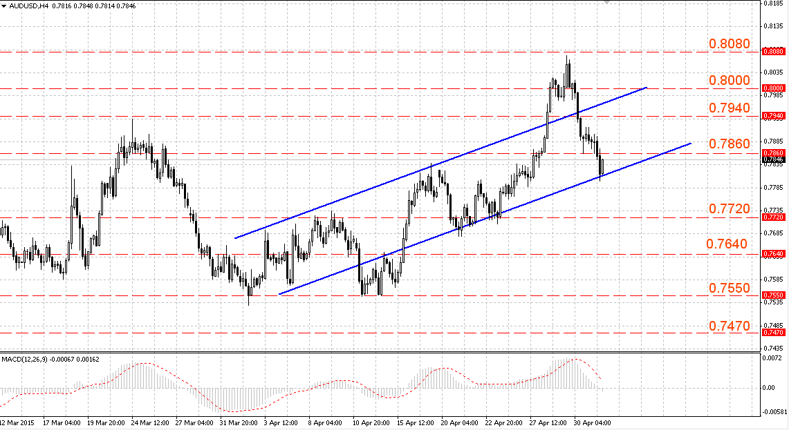 Пара AUD/USD торгуется в восходящем канале 0.7810-0.7925. Значимые уровни Фибоначчи для коррекции 23.6 (0.7940), 38.2 (0.7860), 50.0 (0.7800).