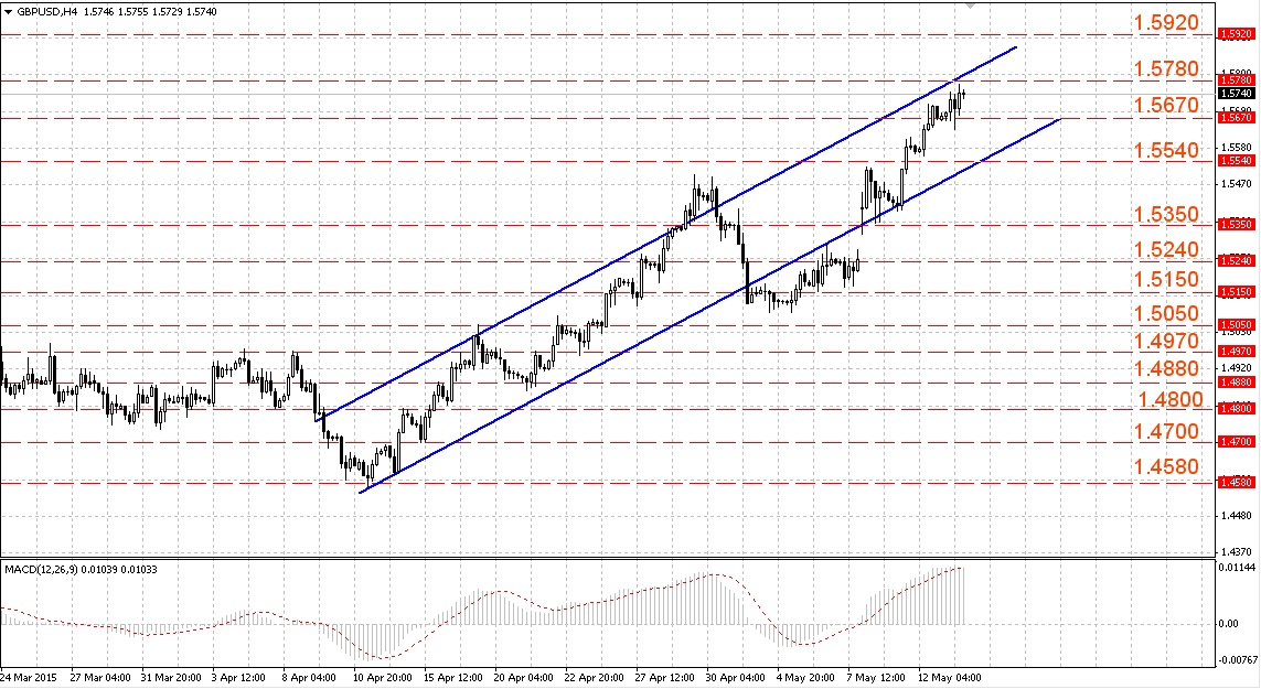 Покупатели по паре фунт/доллар продолжили движение вверх в рамках бычьего импульса. В результате пара обновила максимальные уровни 2015 года в районе фигуры 56.