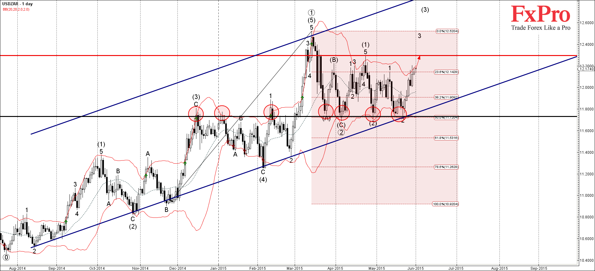 • USD/ZAR растет внутри импульсных волн 3 и (3)