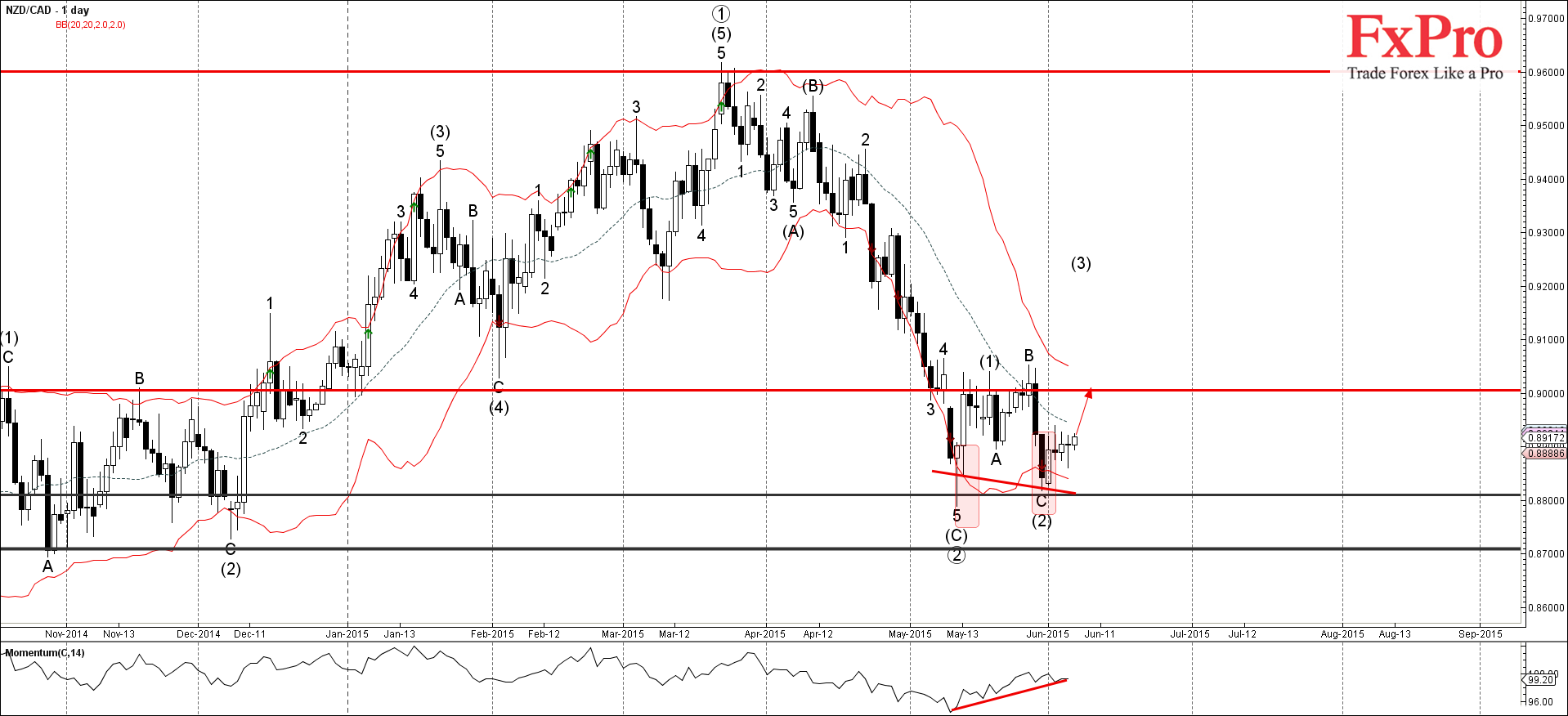 NZD/CAD, вероятно, продолжит расти внутри активной среднесрочной импульсной волны (3) к следующей цели для покупок на круглом уровне сопротивления 0.9000.