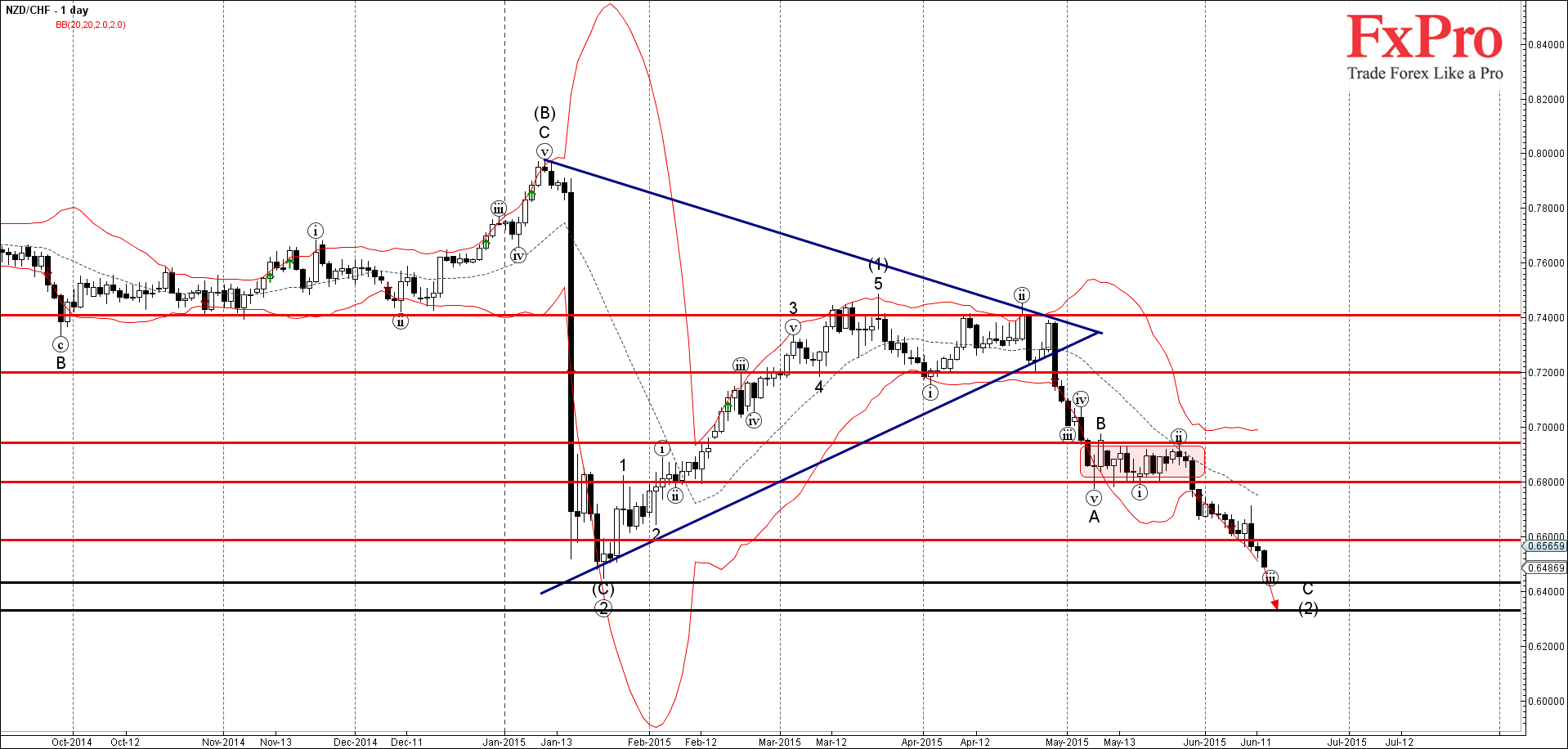 NZD/CHF продолжает падение после недавнего прорыва сильного уровня поддержки 0.6600 - который был установлен в качестве цели для продажи в нашем предыдущем прогнозе для данной валютной пары.