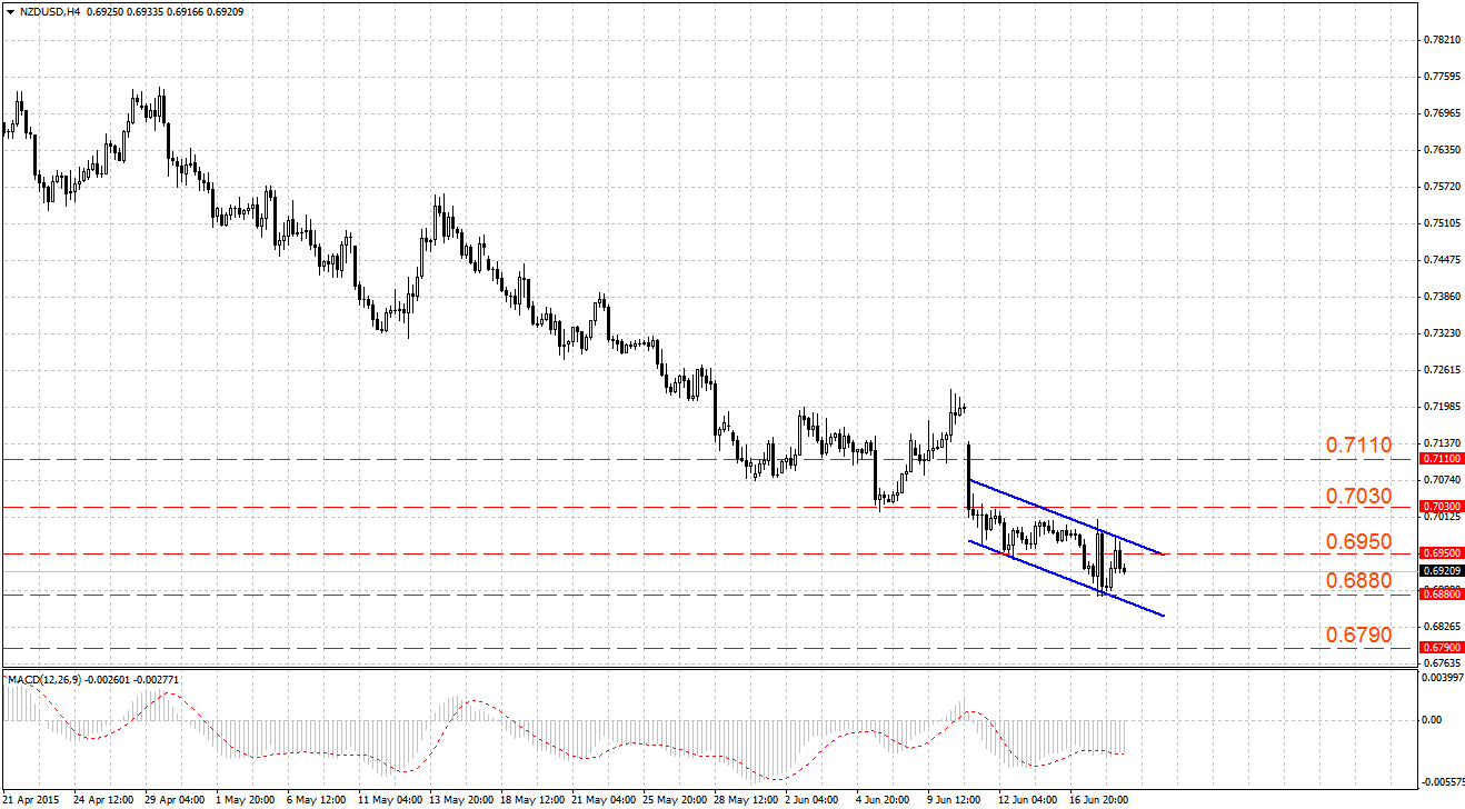 Несколько ранее продавцы преодолели поддержку 0.6950, однако в конце торговой сессии цена снова вернулась за этот уровень. Первый пробой оказался ложным. После выхода негативных данных по ВВП Новой Зеландии произошел повторный пробой поддержки 0.6950.