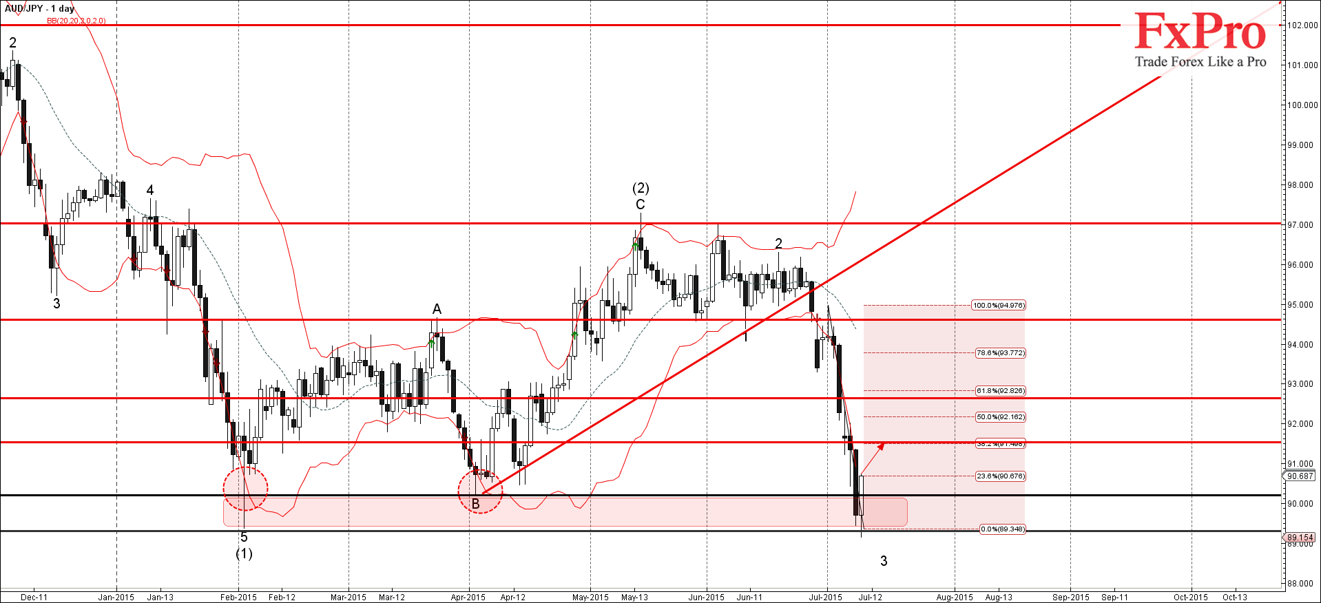 AUD/JPY сегодня развернулся от зоны поддержки лежащей между уровнями поддержки 90.20 (который был установлен в качестве цели для продажи в нашем предыдущем прогнозе для AUD/JPY) и 89.30.