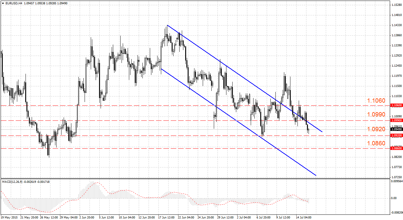 Экономический календарь представил вниманию инвесторов конечную оценку индекса потребцен второй экономики еврозоны – Франции. Полагали, что изменений особых не произойдёт, однако показатели снизились до -0.1% в июне против 0.2% ранее. Ключевым драйвером для евро сейчас является политика. Греческий парламент должен принять решение относительно требований кредиторов. На пару валют EUR/USD влияние оказывают сообщения из Америки, представляющие содержание спича Джанет Йеллен о том, что ставка по процентам может быть повышена уже в этом году.