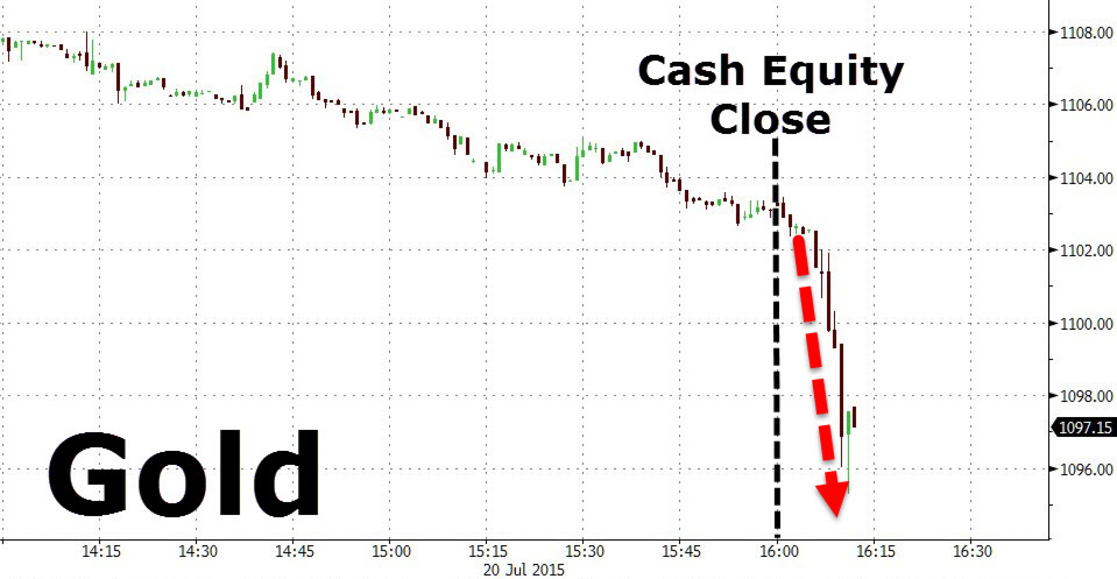 Либо эта цифра разочаровала участников рынка, либо здесь есть признаки манипуляции, но в понедельник котировки золота продемонстрировали самый сильный обвал за 2 года, теряя в моменте более 4%. В итоге, правда, все закончилось не так плохо: потери составили менее 2%. Кстати, после закрытия спот-рынка произошло еще одно любопытное событие: фьючерсы на золото на моментально начали снижаться и вновь упали ниже отметки $1100 за унцию