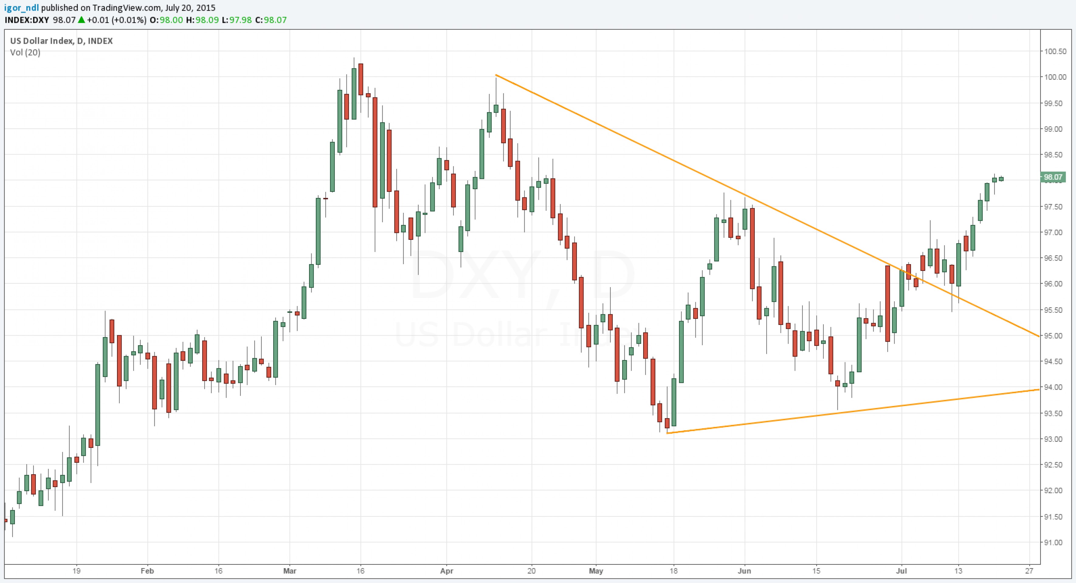 Впрочем, это уже чистой воды манипуляции, ведь после закрытия спот-рынка ликвидность снижается и передвигать цену крупным игрокам становится гораздо проще. Более того, в азиатскую сессию цена на золото пытается восстановиться и прибавляет 0,6%. О дальнейшей динамике судить пока сложно, но, учитывая, что накануне мы наблюдали массовое срабатывание стоп-лоссов, нельзя исключать и более сильного роста в ближайшее время. Так или иначе, динамика цен на "желтый металл" будет оказывать влияние на динамику ЗВР России, все-таки на него приходится почти 15%. Кроме того, Банк России по сравнению с прошлым годом достаточно сильно сократил вложения в долларовые активы, но сейчас именно американская валюта является лидером на международной арене. Индекс доллара к корзине шести основных валют постепенно движется к своим предыдущим максимумам.
