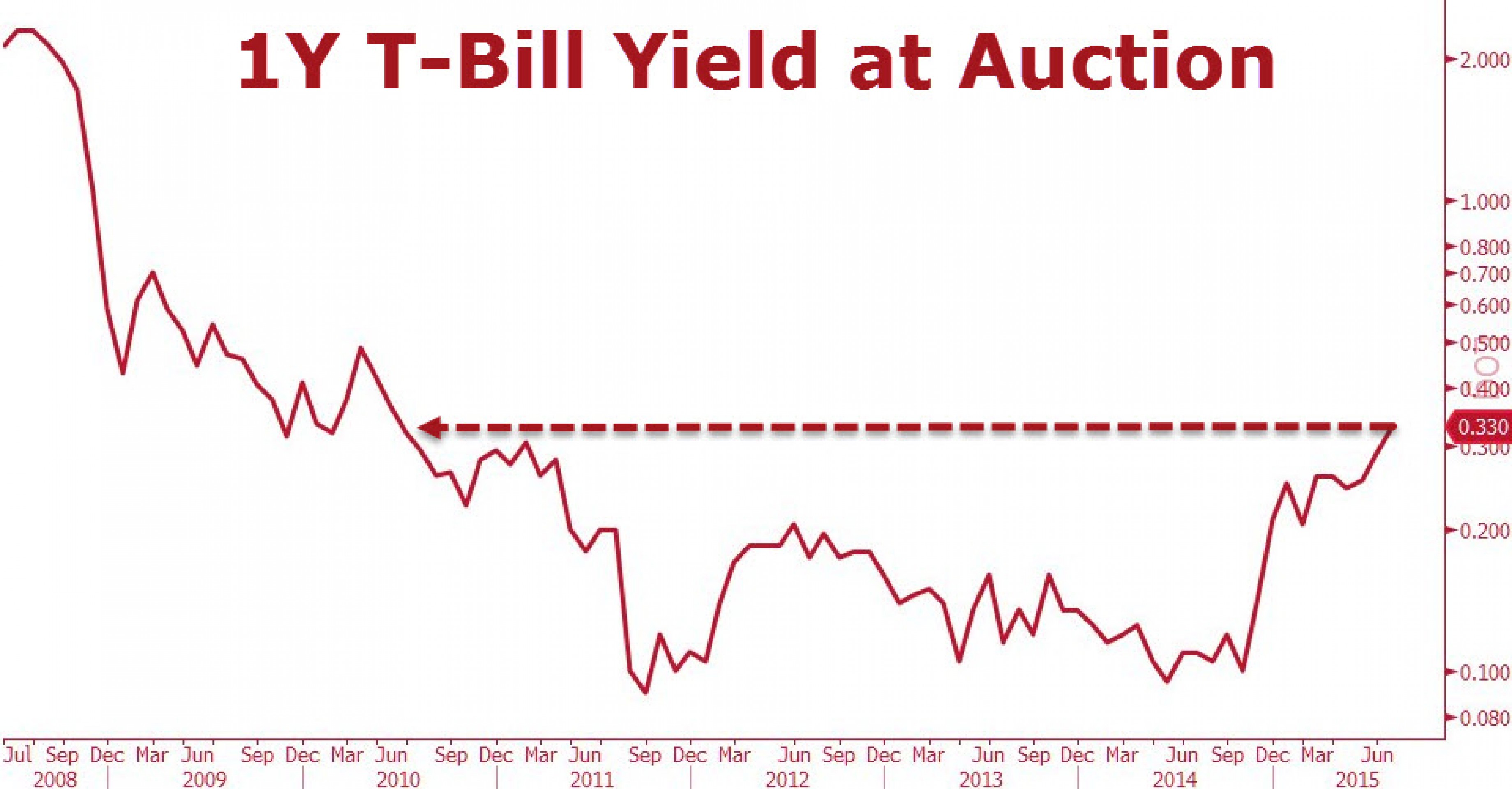В четверг Казначейство США провело аукцион по размещению годовых облигаций на сумму $25 млрд, доходность составила 0,33% - максимум с 2010 г. Что ж, короткий конец кривой доходностей начал подниматься, а это означает, что рынок ожидает повышения ставки скорее раньше, чем позже.