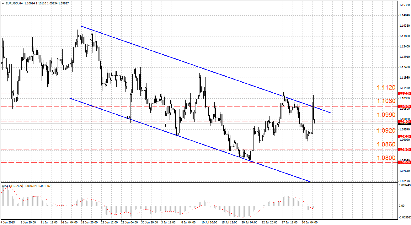 Пара евро/доллар протестировала поддержку 1.0920 и устремилась вверх на фоне позитивных фундаментальных данных из еврозоны. Пробив на своём пути сопротивление в области 1.0990, пара поднялась выше и протестировала дважды отметку 1.1060. После этого произошёл коррекционный откат и тестирование теперь уже поддержки 1.0990.
