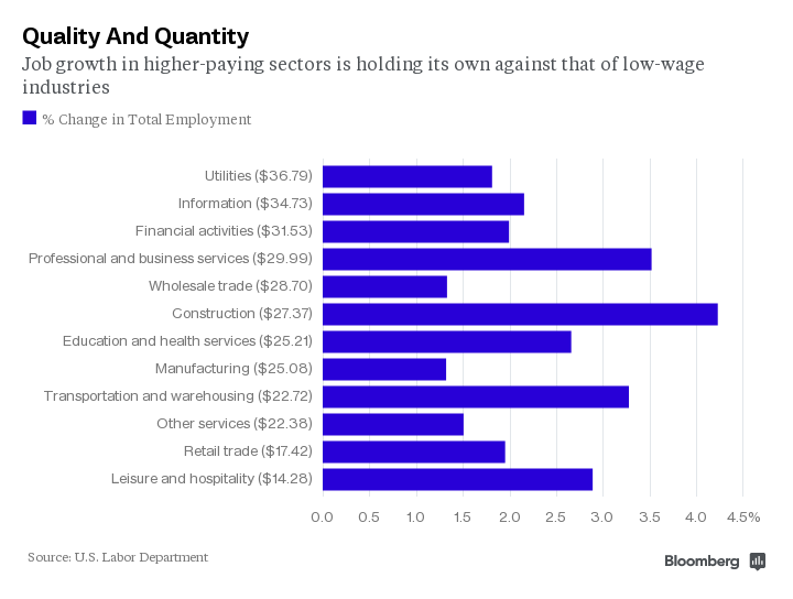 Темпы роста зарплат даже более важны для выбора момента повышения ставок, чем основные данные по занятости, считает Майкл Гайпен, ведущий американский экономист Barclays Plc в Нью-Йорке. Средняя почасовая оплата, как ожидается, вырастет на 0.2% в июле по сравнению с прошлым месяцем после незначительных изменений в июне, показывают данные опроса Bloomberg. В сравнении с прошлым годом, доходы населения, по прогнозам, вырастут на 2.3%.