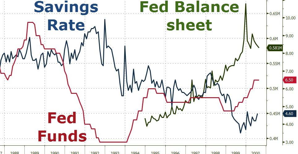 Чтобы увидеть доказательства того,что все это увеличение происходило не за счет сбережений, а за счет денежно-кредитной политики ФРС стоит посмотреть нижеприведенную диаграмму.