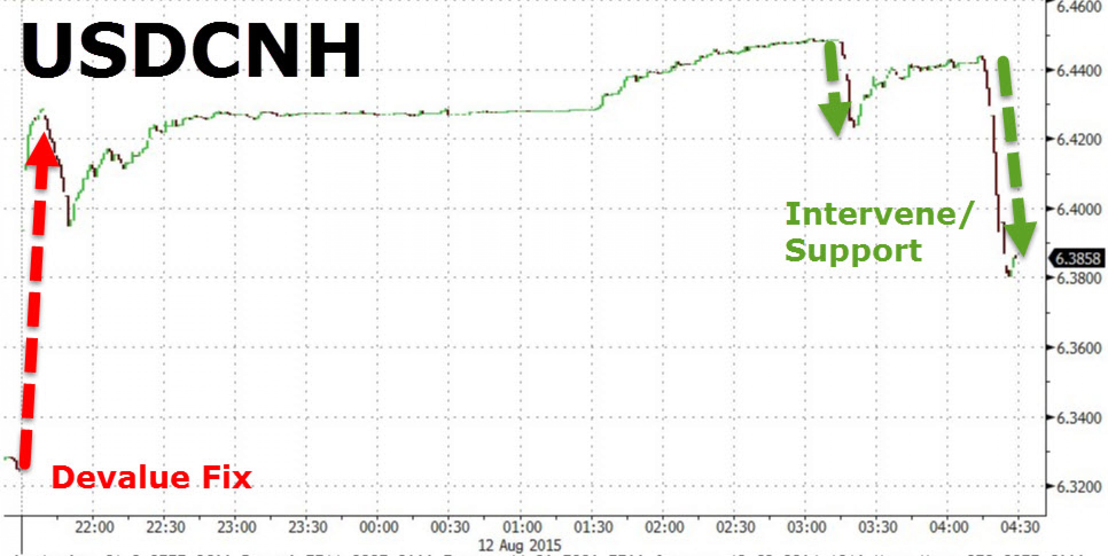 Но и это еще не все. По данным источников издания WSJ, ЦБ Китая был вынужден вмешаться в ход торгов на валютном рынке в последние 15 минут перед закрытием торгов.