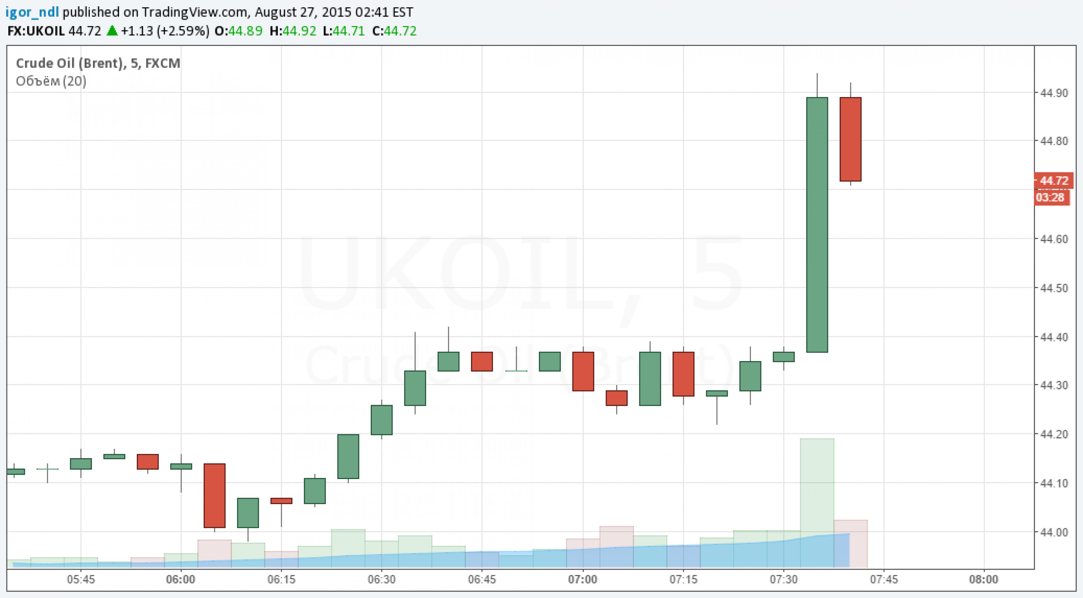 Обращает на себя внимание и рынок сырья. Если накануне на фоне роста фондового рынка США нефть оставалась под давлением, то сегодня она растет, причем сразу на 2,5%. Цена за баррель смеси Brent вплотную приближается к отметке $45. Конечно, это все еще экстремально низкие уровни, но по крайней мере это хоть какая-то позитивная динамика.