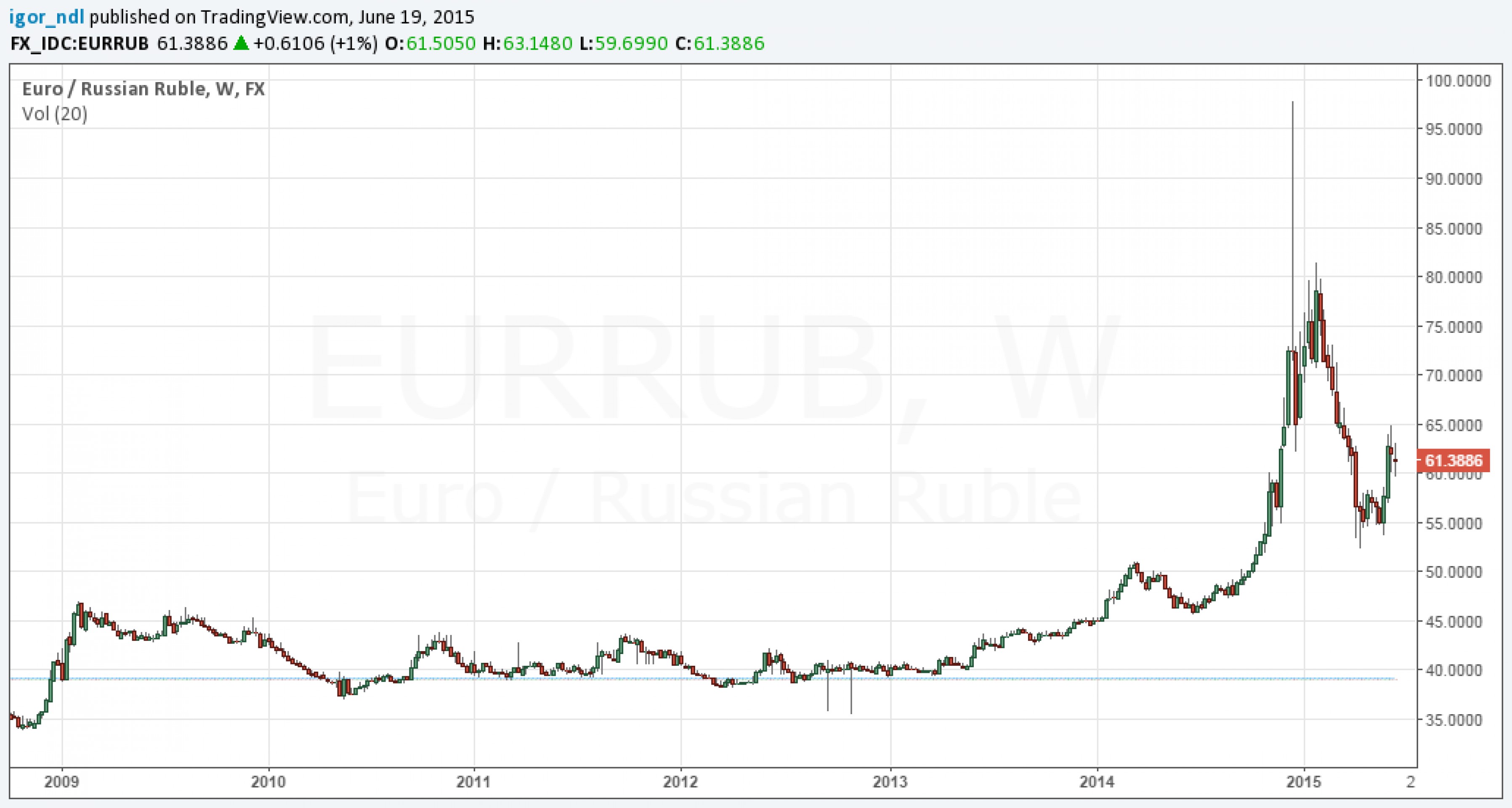 Рубль на этом фоне продолжает свое укрепление. От своих минимумов к евро рубль уже отыграл почти 10%.