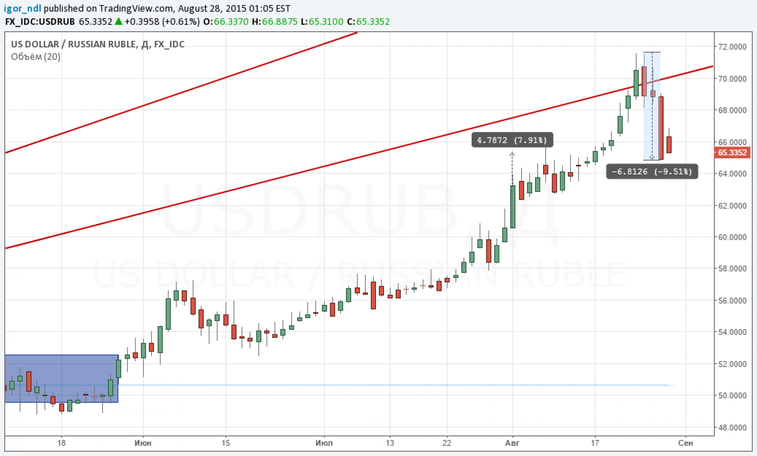 Теперь остается только понять, насколько долгосрочным будет это восстановление на рынке нефти и соответственно до каких уровней укрепится рубль. В начале года, когда нефтяные фьючерсы только начинали свой подъем, мы точно так же стали свидетелями крайне мощного движения на первом этапе. Учитывая этот факт, можно предположить, что в ближайшие несколько месяцев сформируется растущий тренд.