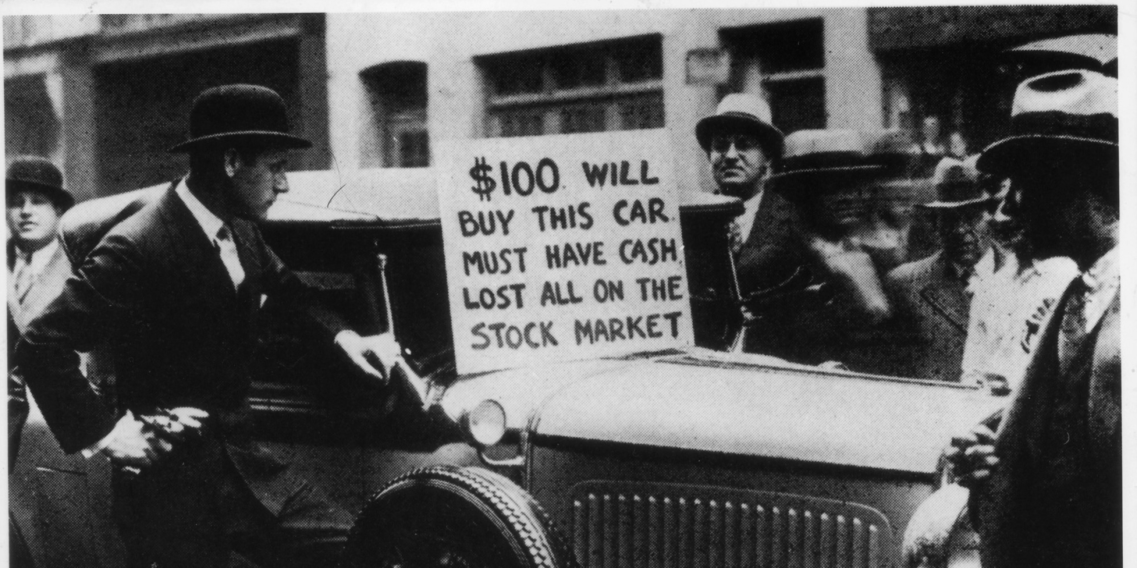 В то время как экономики различных стран находятся в рецессии и девальвируют свои валюту, крепкий доллар позволяет США, например, за меньшие деньги покупать предприятия и другие активы в этих самых странах. В принципе, можно представить еще и такой вариант, когда ФРС умышленно обвалит все рынки мира и только после этого американцы, используя накопленные за это время огромные денежные ресурсы, смогут скупать эти активы буквально за копейки. Кстати, в 1929 г. реальные активы также продавались за гроши. Достаточно взглянуть на эту фотографию.