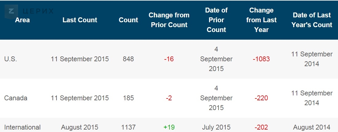 Свежая порция данных от компании Baker Hughes принесла известие о сокращении числа действующих буровых как в США, так и в Канаде. Кроме того были обновлены данные по работавшим в августе буровым в оставшемся мире. Там был отмечен рост. Происходило это за счет Саудовской Аравии, которая всерьез борется за свою долю рынка.