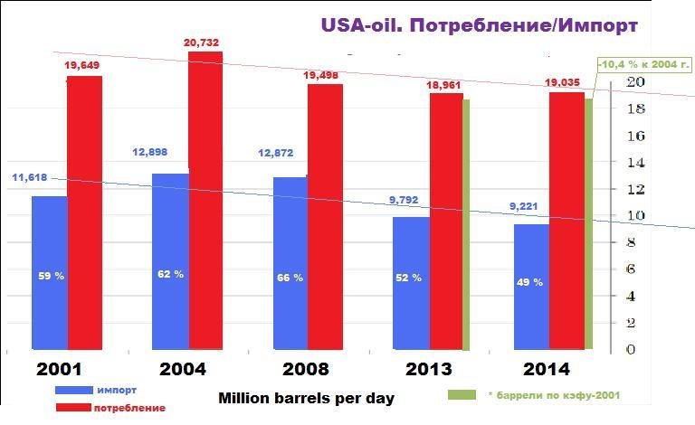 А импорт нефти в США в 2001-м составлял 11,618 млн. бар/д, в 2014-м 9,221.