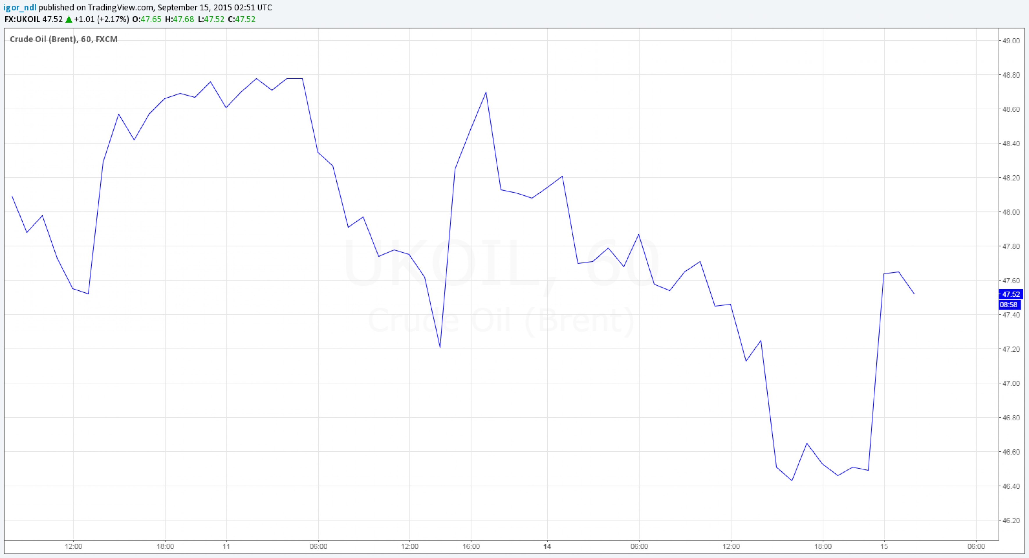 Октябрьские фьючерсы на смесь марки Brent накануне опустились в район $46,5 за баррель, но сегодня эти контракты истекают, и на них уже можно не обращать особого внимания, а вот фьючерсы с поставкой в ноябре стоят примерно на доллар выше, поэтому фактически цена на нефть сегодня снова находится на отметке $47,5.