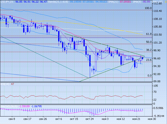 96,95 – поддержка треугольника, сопротивление среднесрочного канала, 21 МА