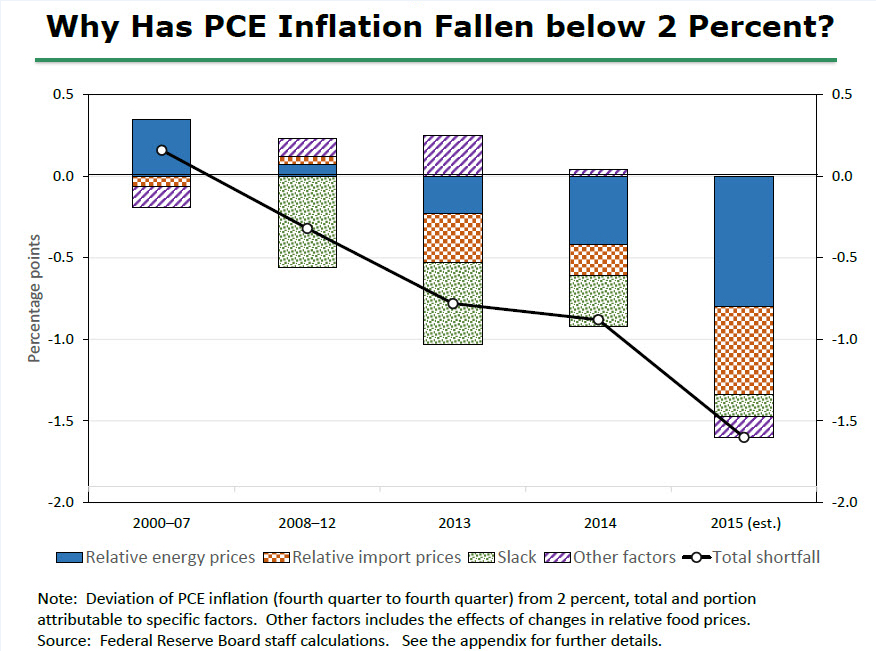 "У нас столько лет была адаптивная политика, что я думаю, что рынок теряет веру в ФРС, - заявил Прия Мисра, ведущий специалист по глобальным стратегиям по процентным ставкам в TD Securities, который является одним из 22 первичных дилеров, торгующих с ЦБ. - Влияния политики на инфляцию попросту не видно". Снижение цен на энергоносители продолжало удерживать инфляцию низкой, и этот тренд, вероятно, будет носить временный характер, по мнению Йеллен. Тем не менее, она сослалась на еще одну силу позади снижающейся инфляции : укрепление доллара, которое снижается стоимость импорта.