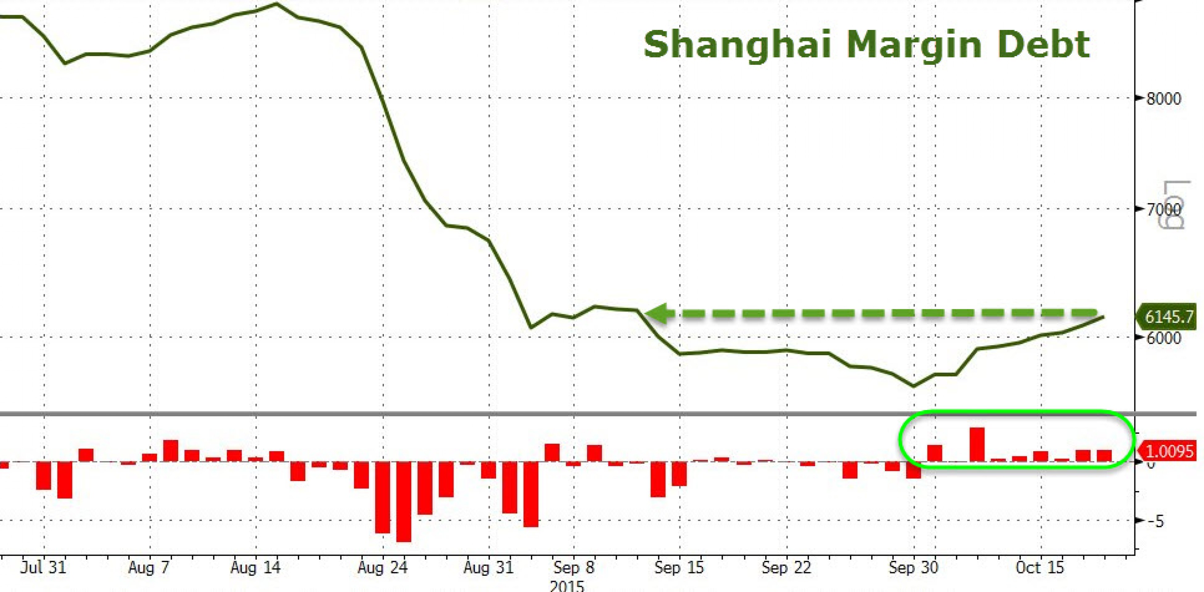 В целом же день на китайском финансовом рынке проходит относительно спокойно. Фондовые индикаторы торгуются в небольшом минусе. Впрочем, если посмотреть внимательно, можно обратить внимание на отдельные моменты, которые можно классифицировать как очень негативные. Дело в том, что китайские инвесторы, судя по всему, не хотят учиться на своих же ошибках и снова скупают акции на заемные средства. Маржинальный долг растет с начала октября, и это самый длинный период роста за последние четыре месяца.