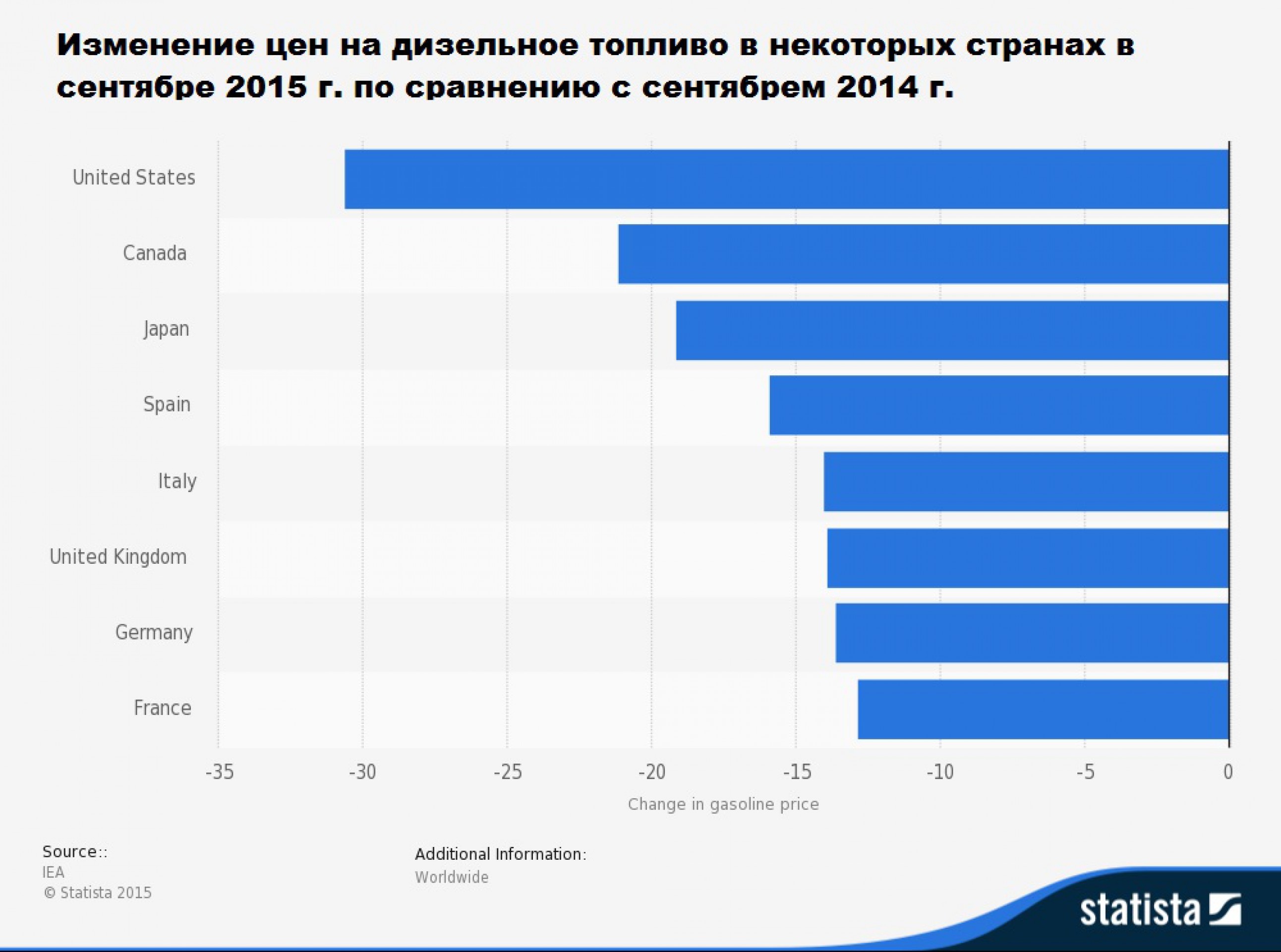 Из-за большого объема дешевой нефти постепенно растут запасы переработанного топлива, а цены соответственно снижаются.