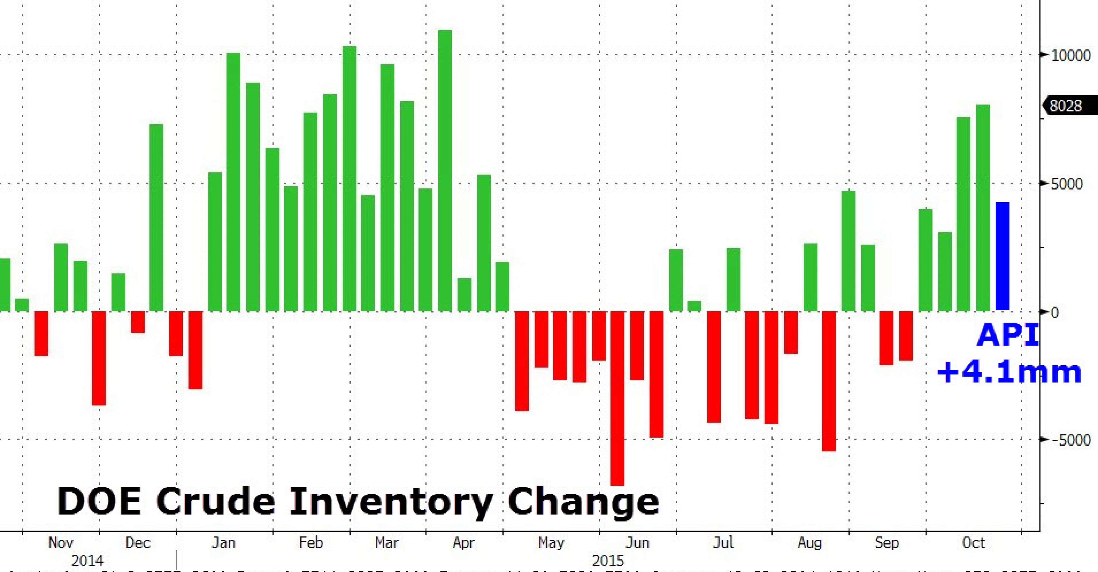 Запасы выросли на 4,1 млн баррелей, то есть они растут уже пятую неделю подряд.