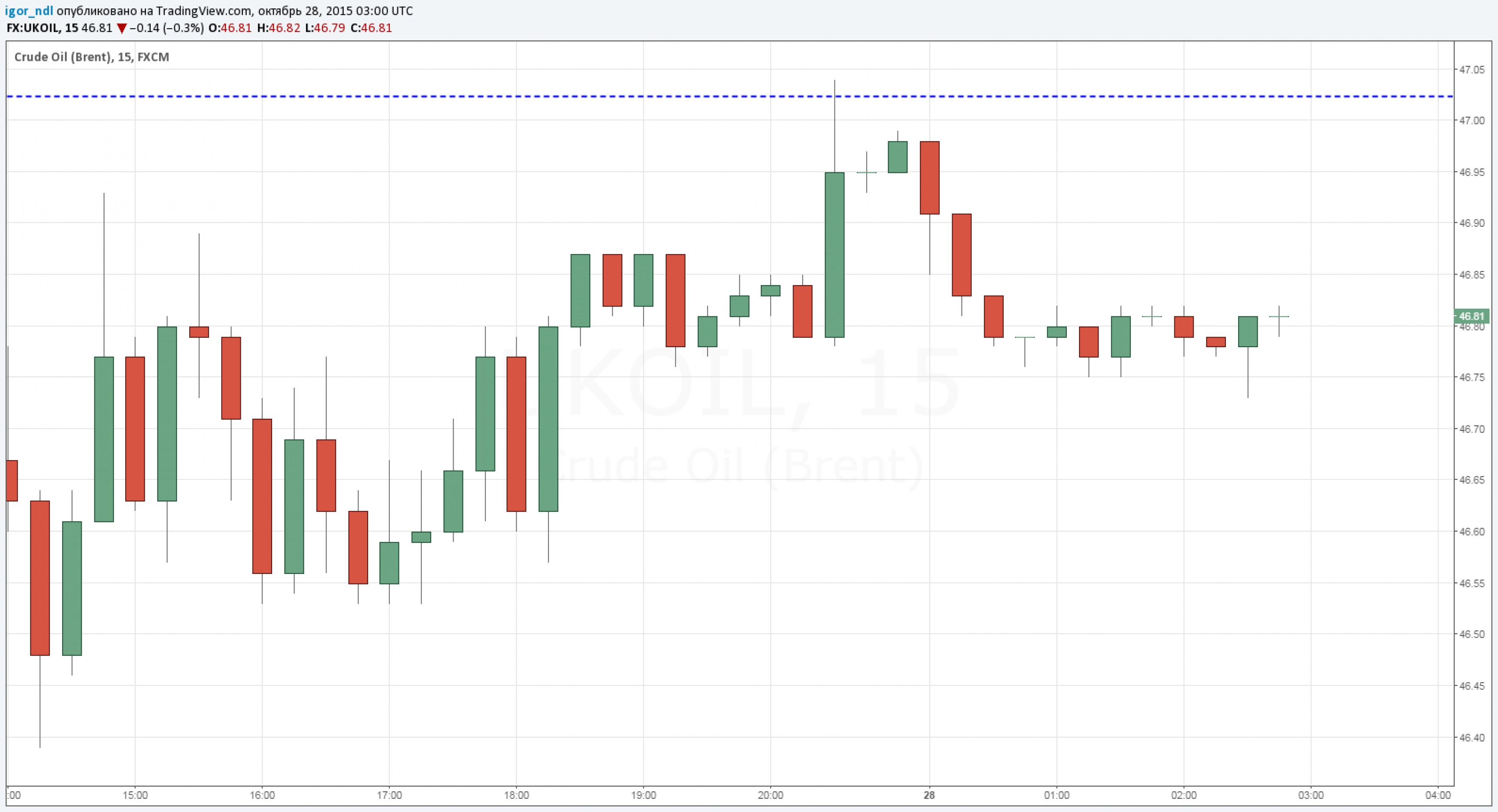 Кстати, вчера под закрытие цена за бочку смеси Brent предприняла попытку отыграть большую часть потерь и даже сумела закрыться на отметке $47, но сегодня в азиатскую сессию котировки снова немного снижаются.