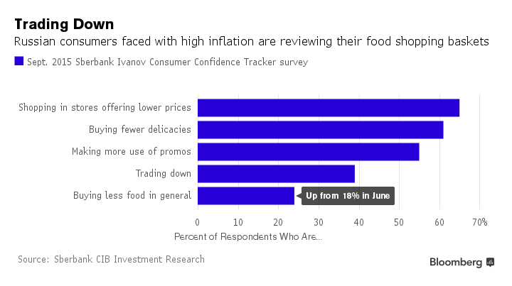 На фоне снижения доходов, потребители избавлялись от затратных привычек. Они стали меньше ездить за границу, и перешли на русские продовольственные товары. Запрет на импорт также способствовал этому процессу.