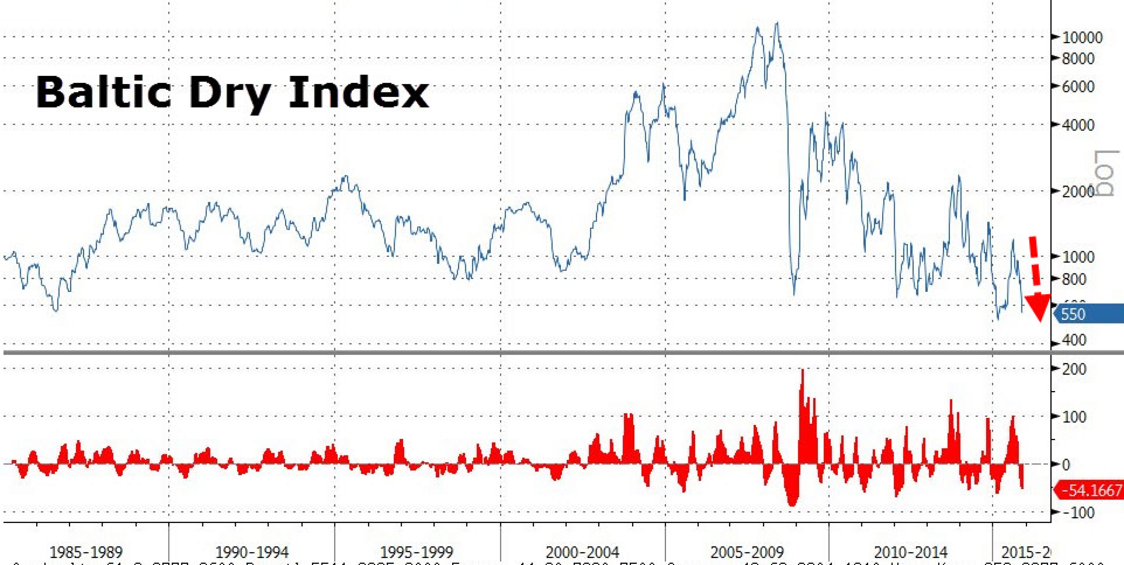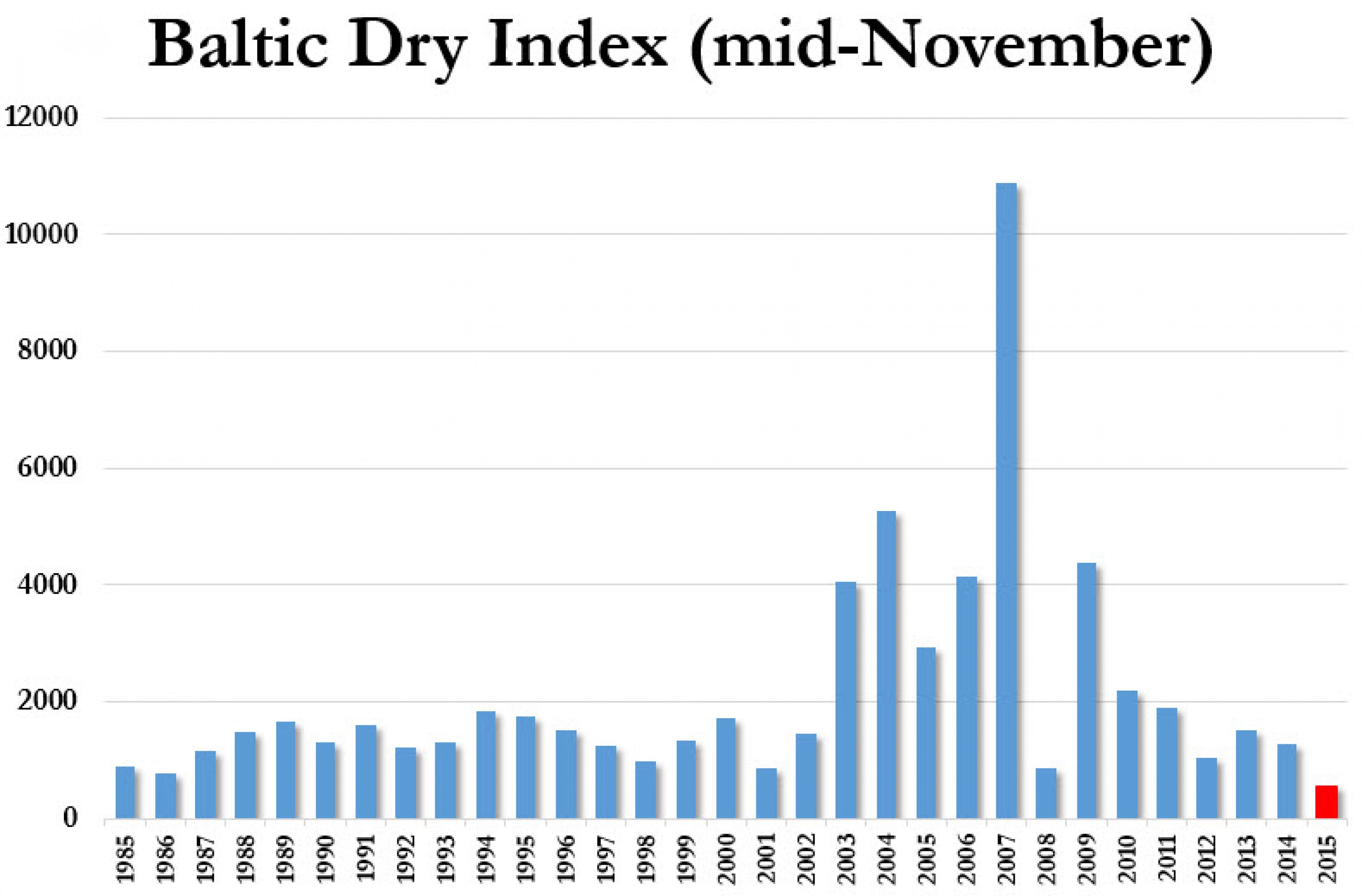 The Baltic Dry Index, характеризующий стоимость морского фрахта, приблизился к своим историческим минимумам. При этом в середине года индекс восстанавливался на фоне обещаний стабильности в Китае и заявлений об улучшении состояния экономики США.